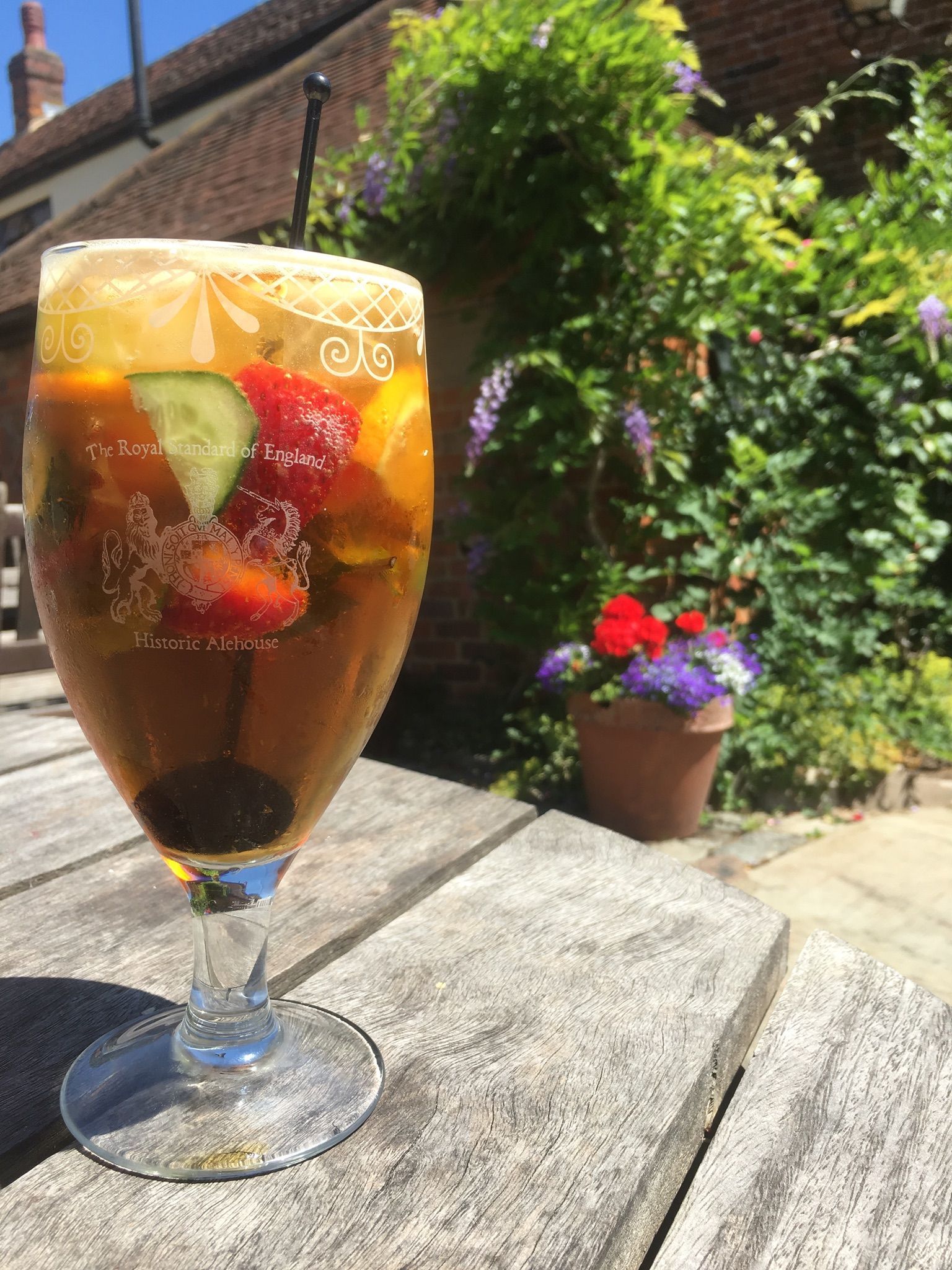 #gin #tonic #gandt #fevertree #bloom #strawberries #drink #beverage #sun #sunnyday #beaconsfield #theroyalstandardofengland #theoldestfreehouse #pub #freehouse